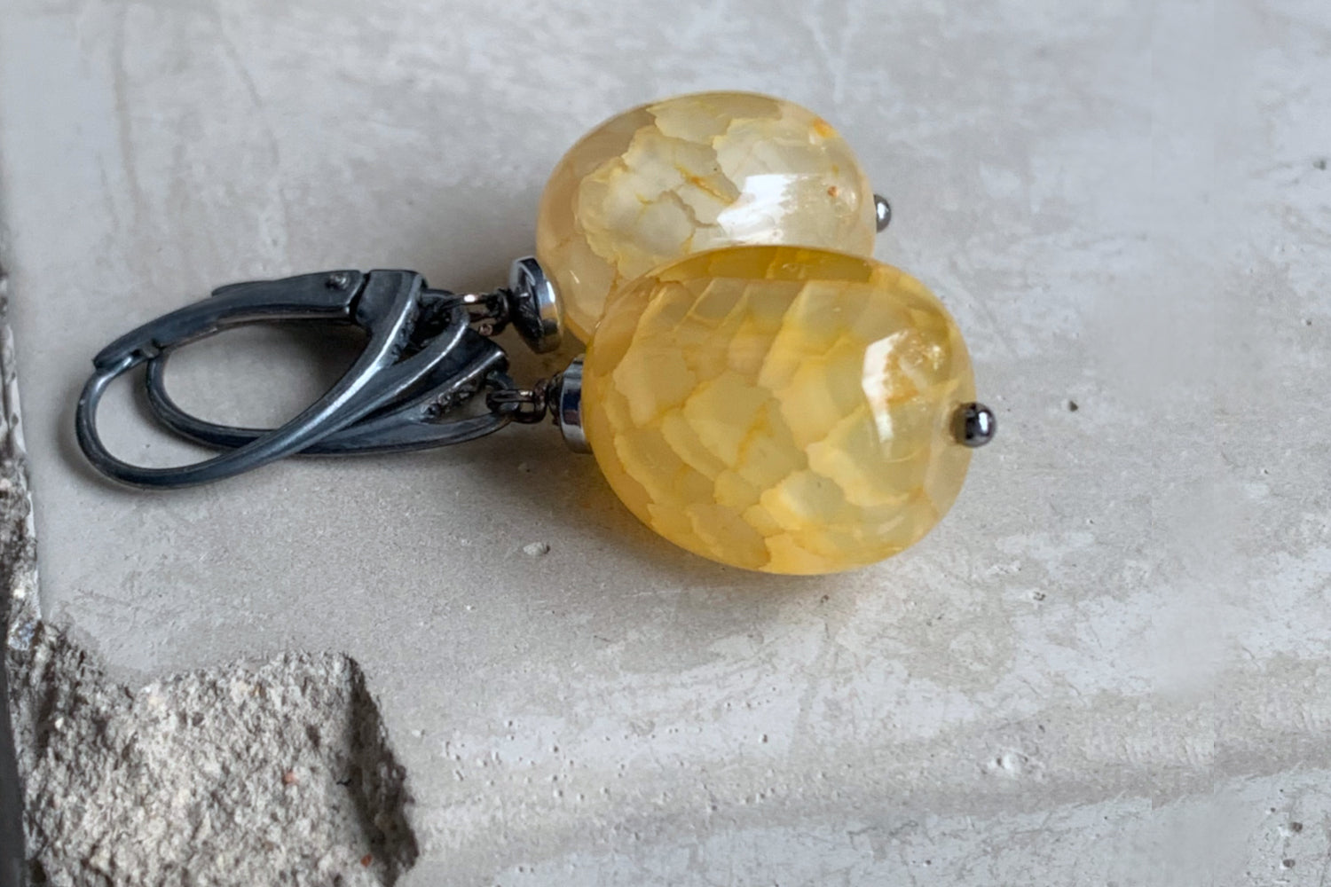 Pendientes de ágata, jadeíta, latón y plata 'Pajaritos del Bosque'