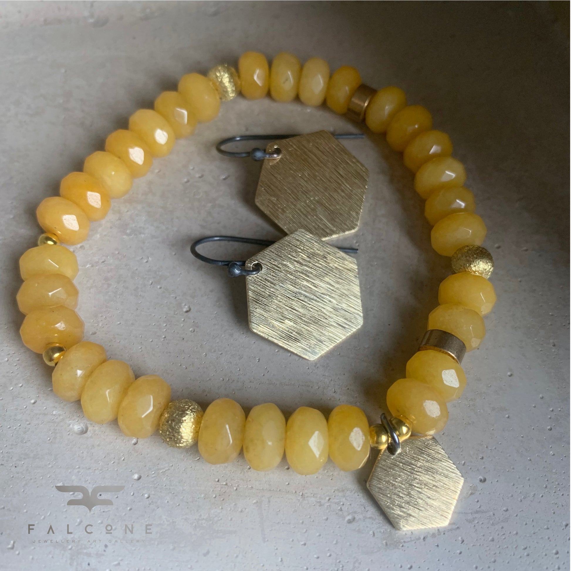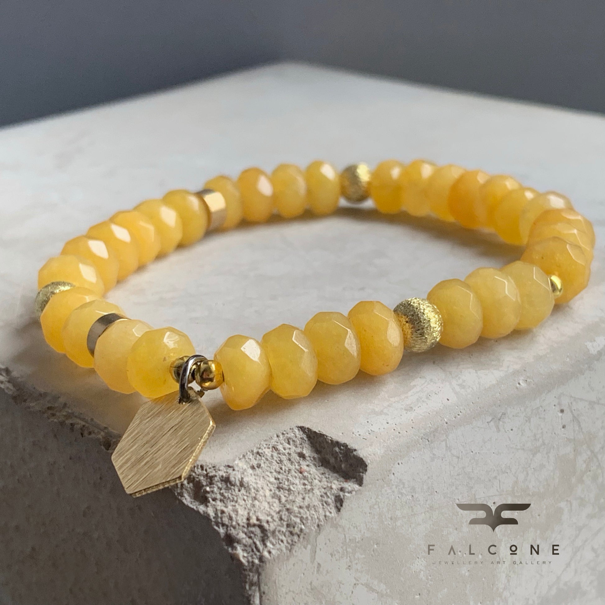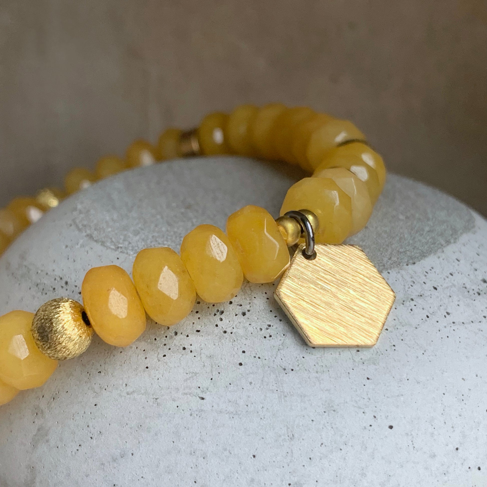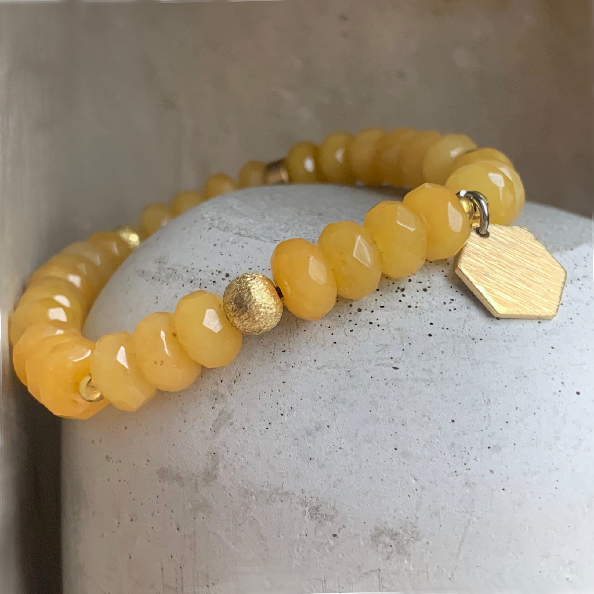 Gemstone and Brass Bracelet 'Honey – Jadeite & Brass'