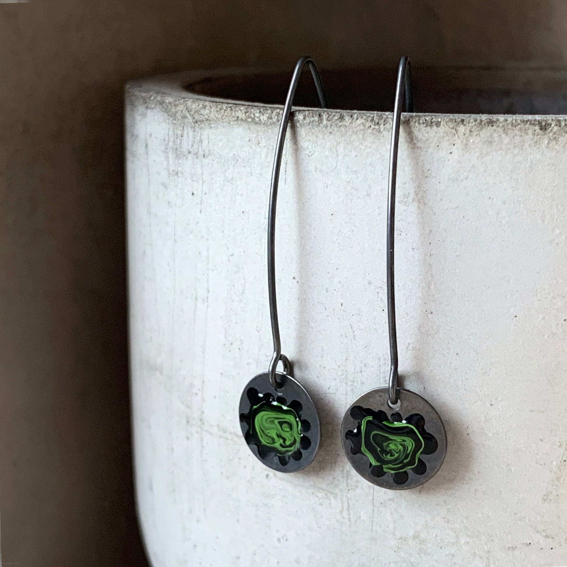Silver Enamel Earrings 'Wildflowers - Black & Forest Green'